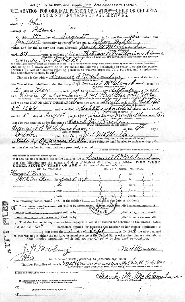 D2 Samuel Albert McClanahan Civil War Pension Records