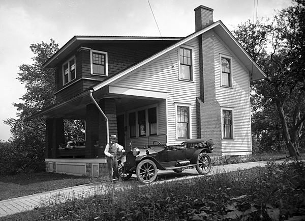 George Elmer Fisher with his 1915 Hupmobile This is a 1915 "selfie" Note the remote cord in George's hand extending back to his dry plate negative camera |