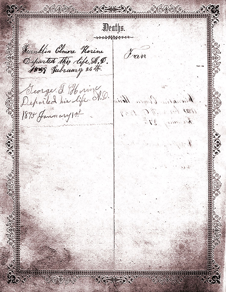 Georege Tobias Horine (1830-1895) Family Bible: Deaths