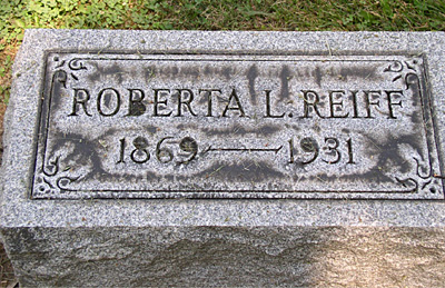 Mrs. Roberta Junkin Reiff, widow of John A. Reiff, died last night at the residences of her brother, William T Junkin, 821 Franklin St., of heart disease. Mrs. Reiff was born in Peru Indiana, Jan 23,1869, but spent most of her life here in Hamilton. She was married to John Reiff, Nov. 26,1890, at Hamilton. No children were born of this union but her entire life devoted to the care and affection of the children of the immediate family whom she loved as her own. Her cheerful disposition and her fraternal affiliations attracted a wide circle of friends.